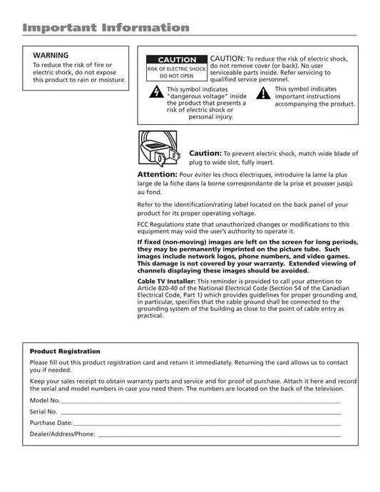 RCA 20F670T 20F670TECU 24F670TNCU TV Operating Manual
