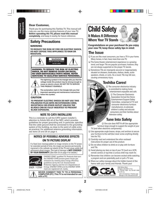 Toshiba 42HDX82 50HDX82 57HDX82 TV Operating Manual