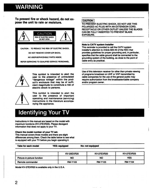 Sony KV20EXR20 KV27EXR20 KV27EXR25 TV Operating Manual