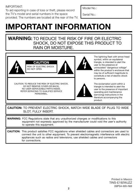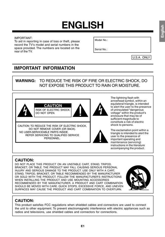 Sharp LC37SH20U TV Operating Manual