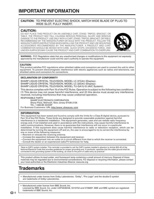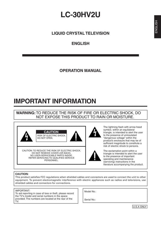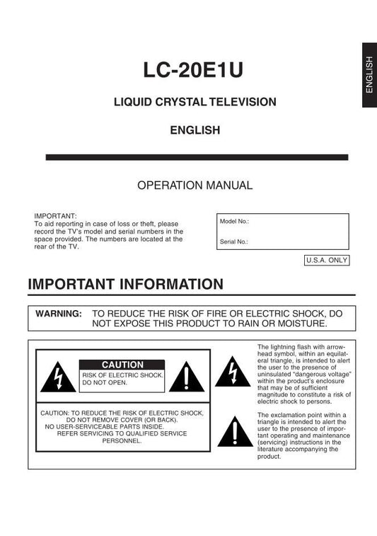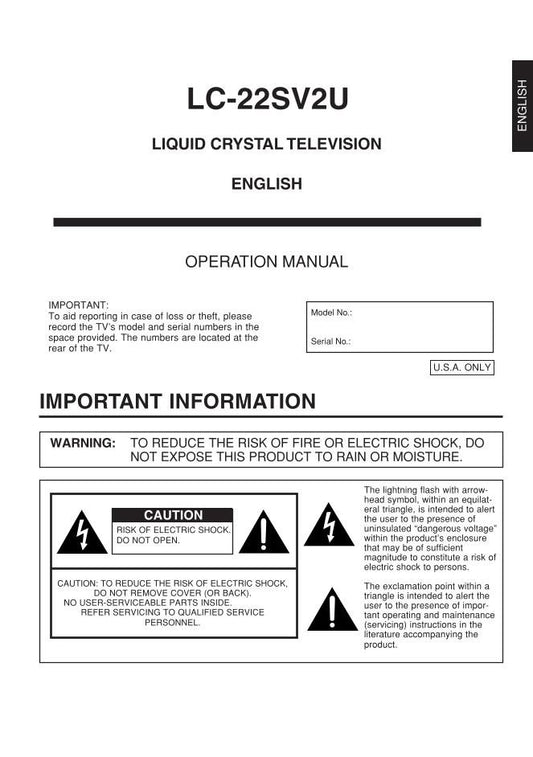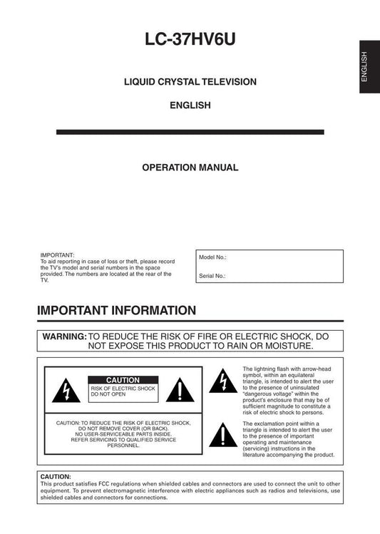 Sharp LC32G4U LC37G4U TV Operating Manual