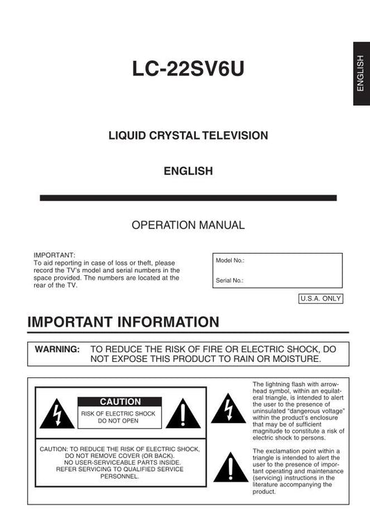Sharp LC26GA5U LC32GA5U TV Operating Manual