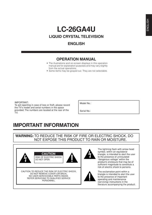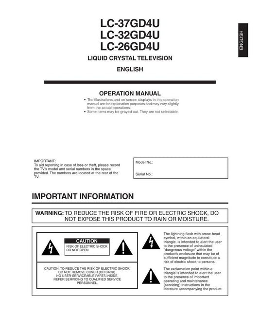Sharp LC26GD4U LC32GD4U LC37GD4U TV Operating Manual