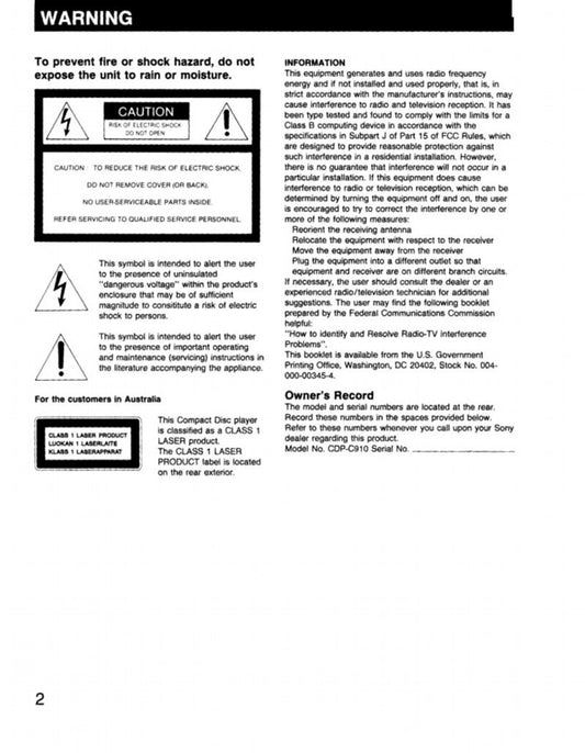 Sony CDPC910 TV Operating Manual