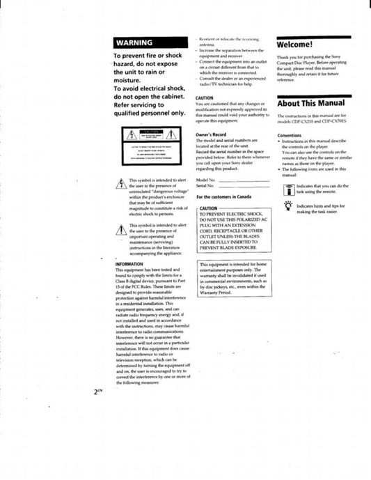 Sony CDPCX255 CDPCX70ES TV Operating Manual