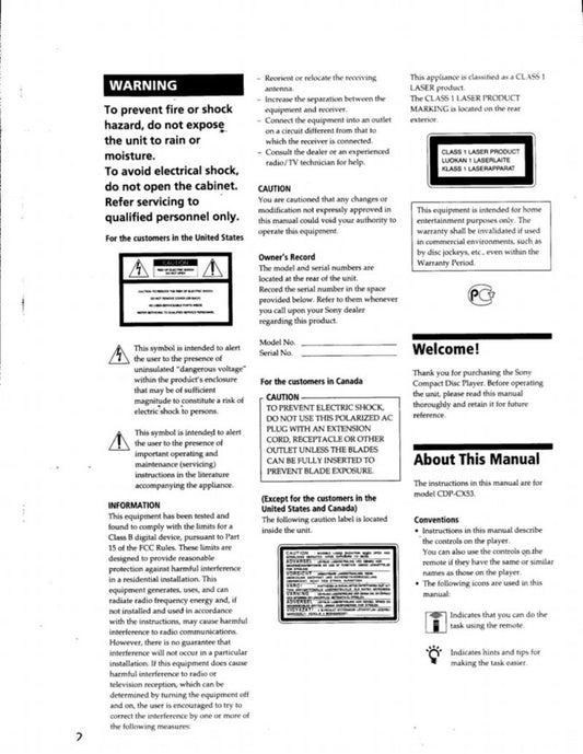 Sony CDPCX53 TV Operating Manual