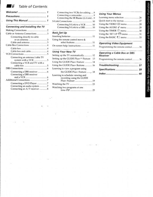 Sony KDL32XBR4 KDL40D3000 TV Operating Manual