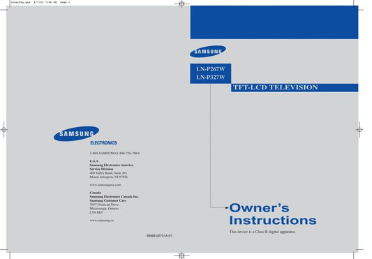 Samsung LNR237 LNR237W1 LNR238 TV Operating Manual