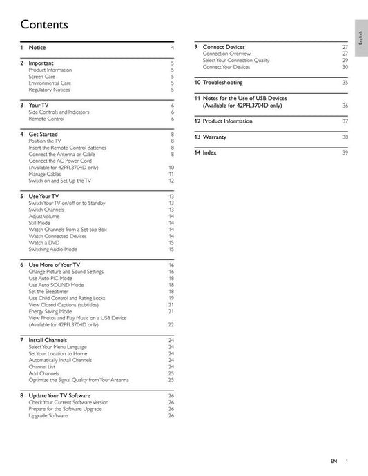 Philips 32PFL3504D 32PFL3514D 42PFL3704DF7 TV Operating Manual