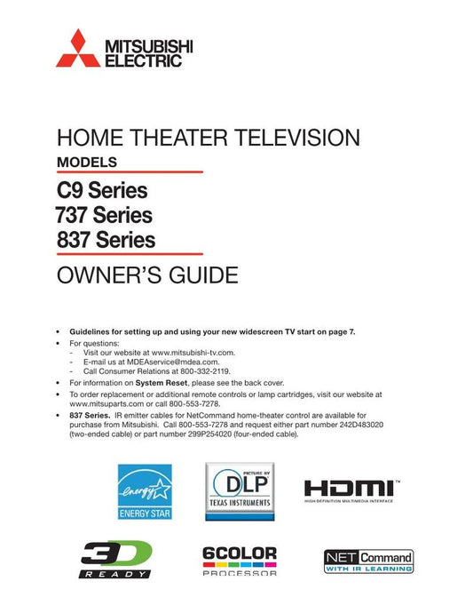 Mitsubishi WD60737 WD60 C 9 WD65737 TV Operating Manual