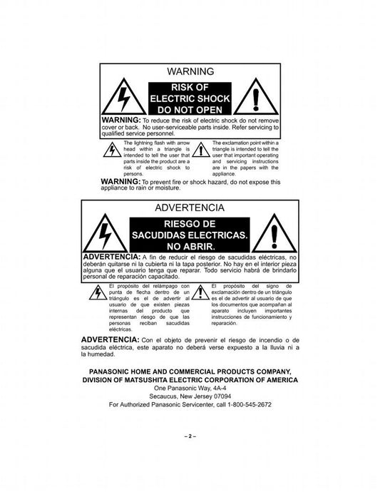 Panasonic PT47WX49 PT47WX49E PT47WX51 TV Operating Manual