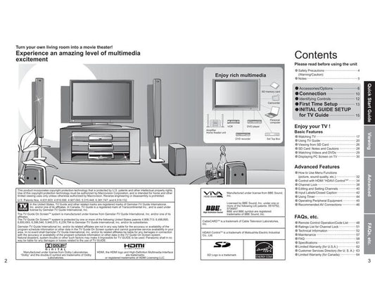 Panasonic TH65XVS30U TUPT700U TV Operating Manual