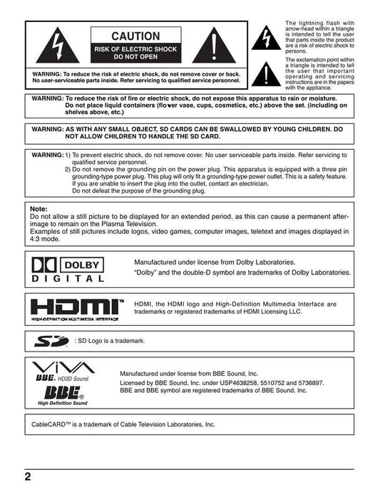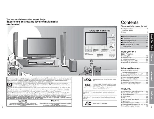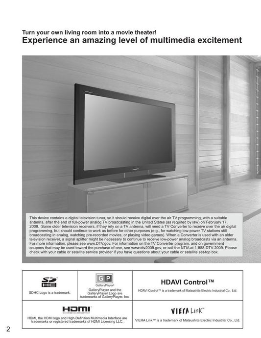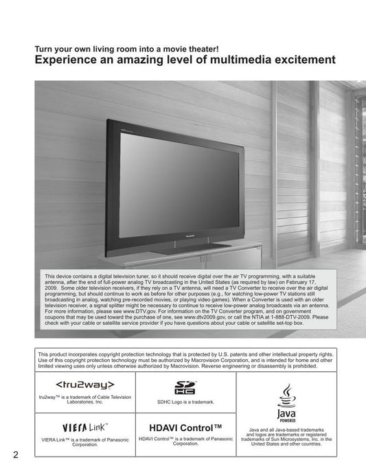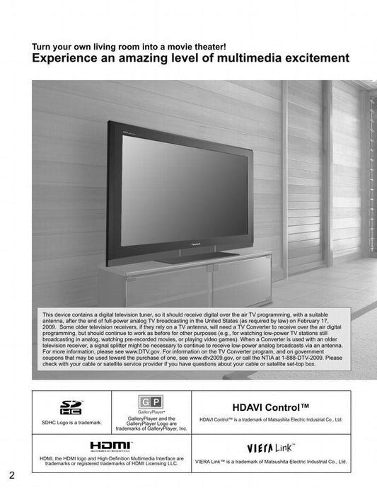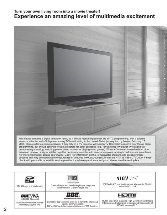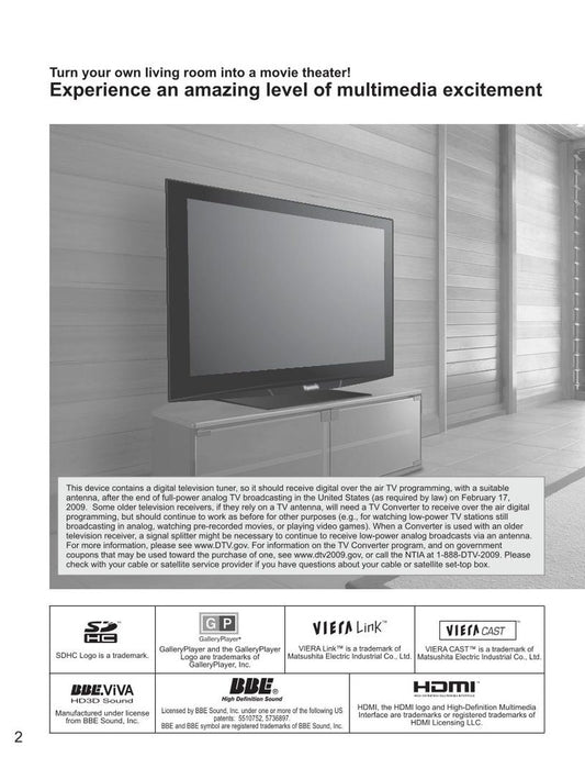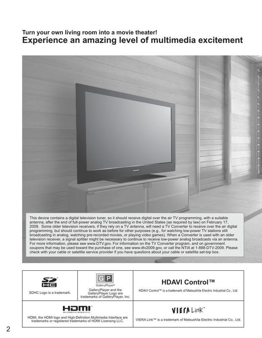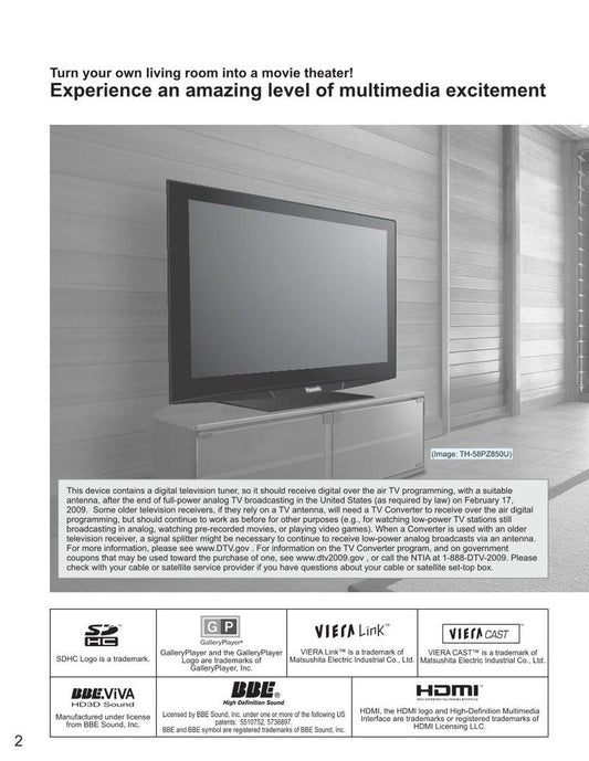 Panasonic TH42PZ80Q TH50PZ80Q TV Operating Manual