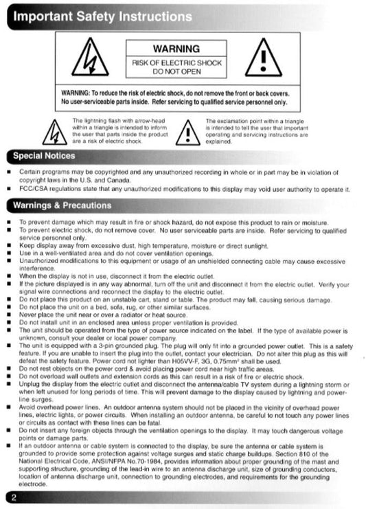 Pioneer PRO110FD PRO150FD TV Operating Manual