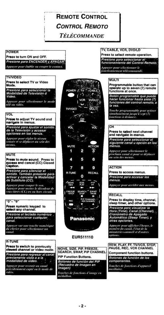Panasonic EUR511110 Manual Codes TV Operating Manual