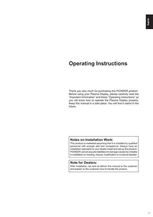 Pioneer PDP4280HD PDP5080HD TV Operating Manual