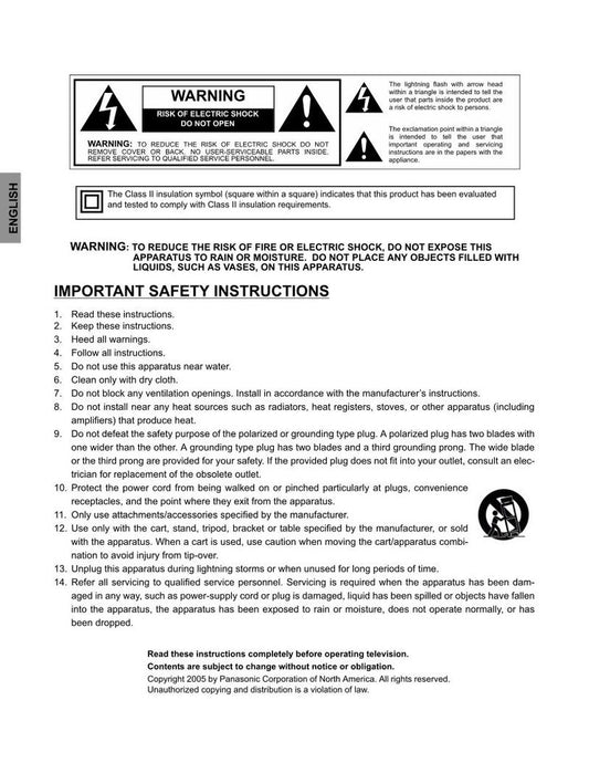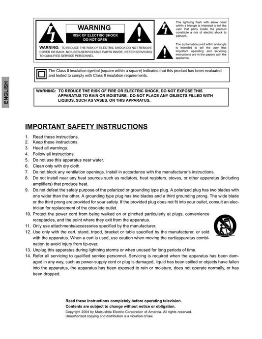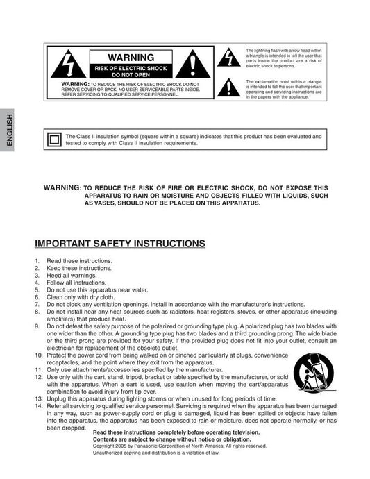 Panasonic PT43LC14 PT50LC14 PT60LC14 TV Operating Manual