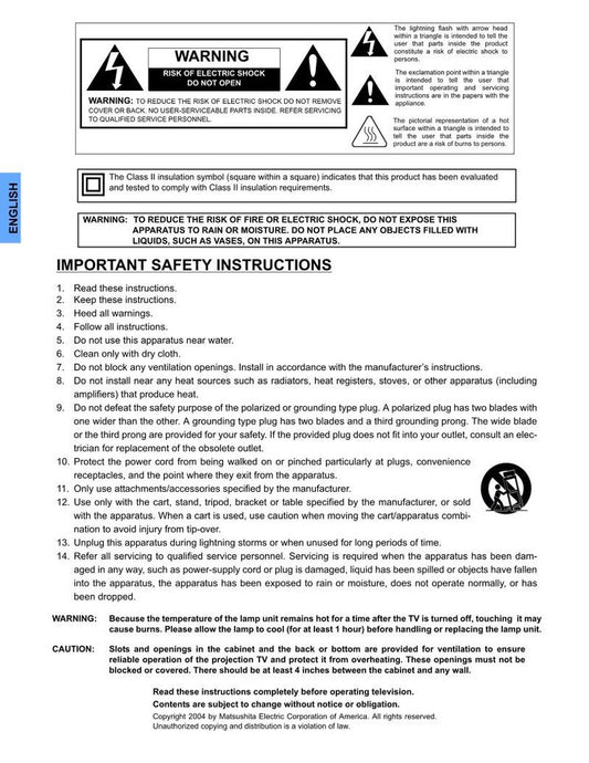 Panasonic PT50DL54 PT60DL54 TV Operating Manual