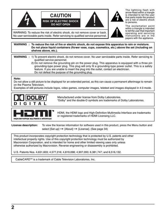 Panasonic TH37PX60U TH42PX60U TH42PX60X TV Operating Manual