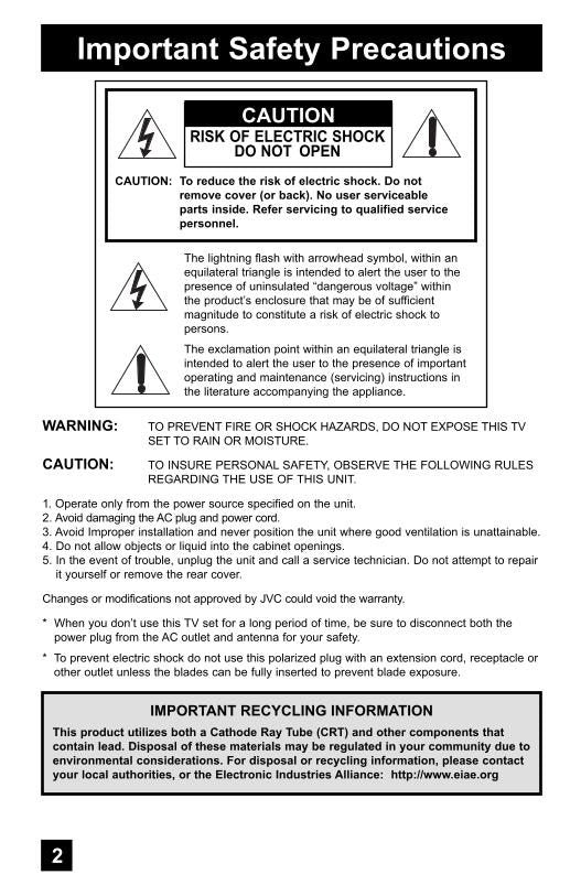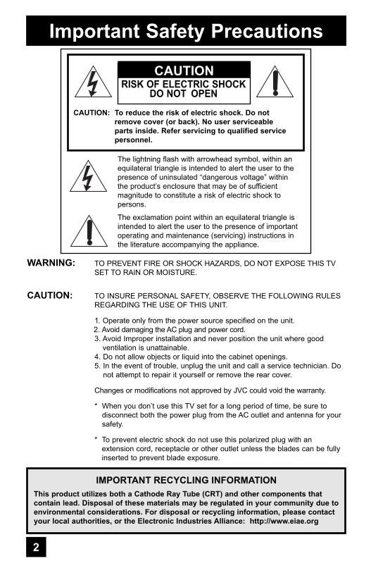 JVC HV29LPZ HV34LPZ HV53PRO TV Operating Manual