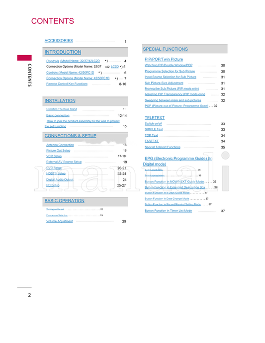 LG 32LC2D 32LC2DC 37LC2D 42LC2D 42PC3D 42PC3DC 42PC3DV 50PC3D (68 pages) TV Operating Manual