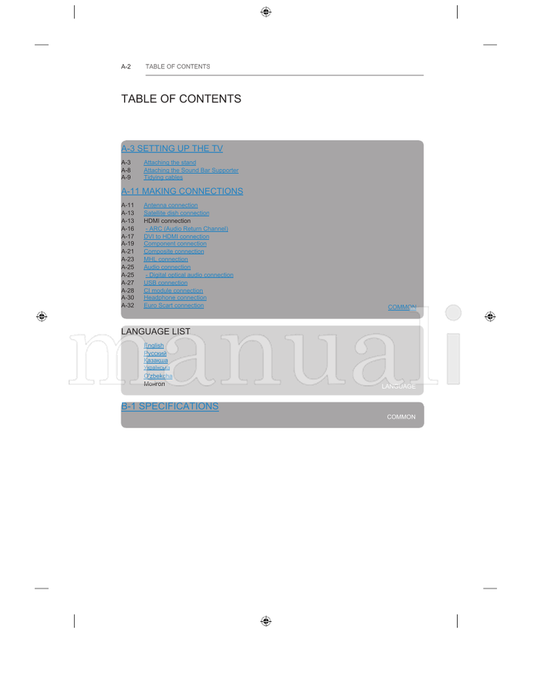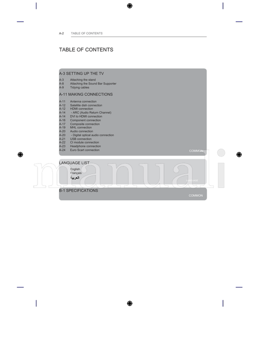 Find downloadable PDF operating and service manuals for your TV at Manuali. Access detailed guides for troubleshooting, maintenance, and maximizing your TV’s performance. Instant downloads available for a wide range of brands and models. Explore our collection now!