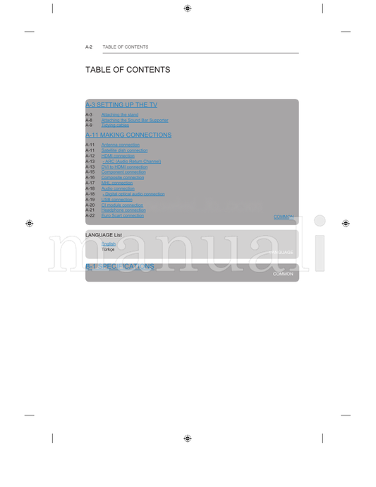 Find downloadable PDF operating and service manuals for your TV at Manuali. Access detailed guides for troubleshooting, maintenance, and maximizing your TV’s performance. Instant downloads available for a wide range of brands and models. Explore our collection now!