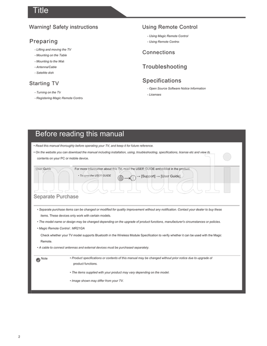 Find downloadable PDF operating and service manuals for your TV at Manuali. Access detailed guides for troubleshooting, maintenance, and maximizing your TV’s performance. Instant downloads available for a wide range of brands and models. Explore our collection now!