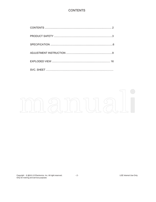 LG Contents 42LV3500 (100 pages) TV Service Manual
