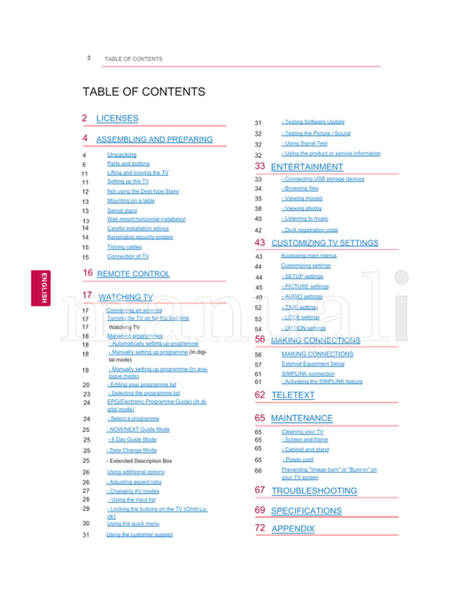 LG 32LV3400 19LV2500 32LV3500 22LV2500 37LV3500 26LV2500 (72 pages) TV Operating Manual