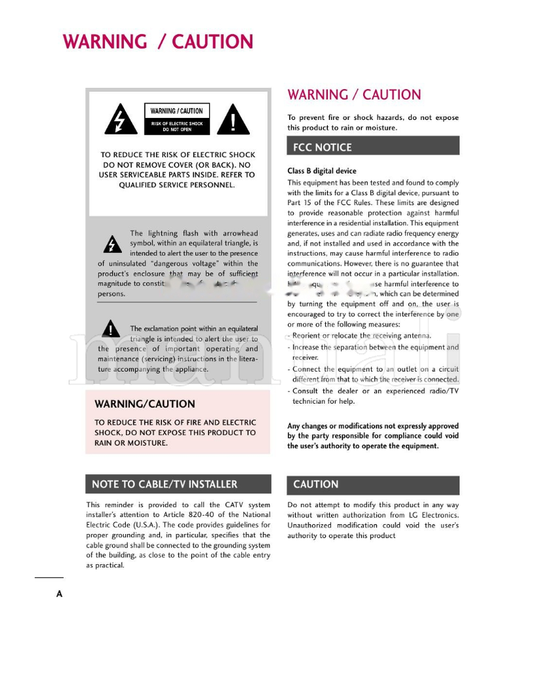 LG LA85C 19LG30 19LG31 19LG30-UA 19LG31-UB (25 pages) TV Service Manual
