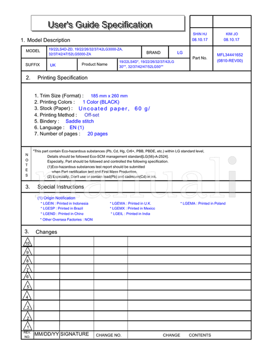 LG Description 22LS4D-ZC 42LG3000-ZA 52LG5000-ZA 22LS4D* (404 pages) TV Operating Manual