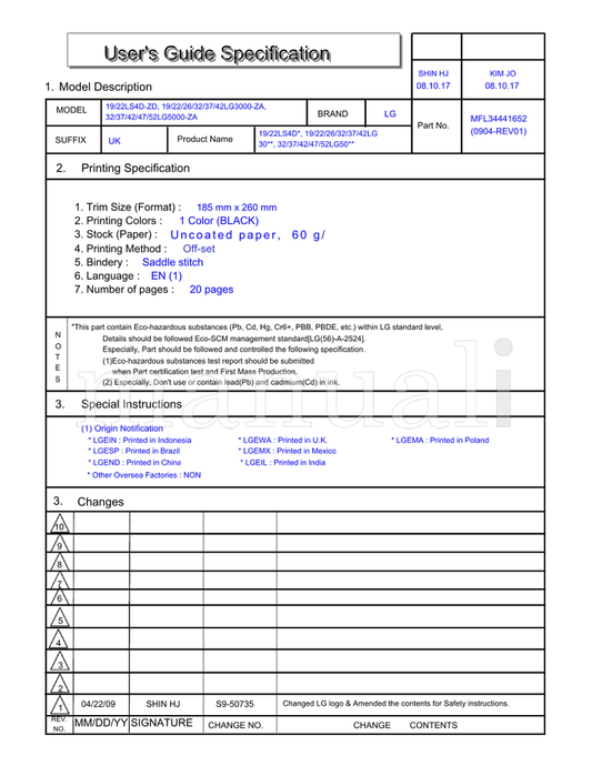 LG Description 22LS4D-ZD 423000-ZA 525000-ZA 22LS4D* 5250** (23 pages) TV Operating Manual