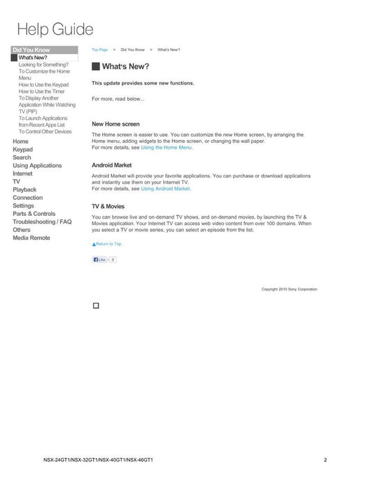 Sony NSGMR1 NSX24GT1 NSX32GT1 Universal Remote Control Operating Manual