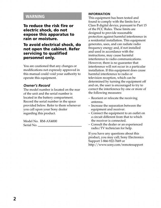 Sony RMAX4000 & CodesOM Universal Remote Control Operating Manual