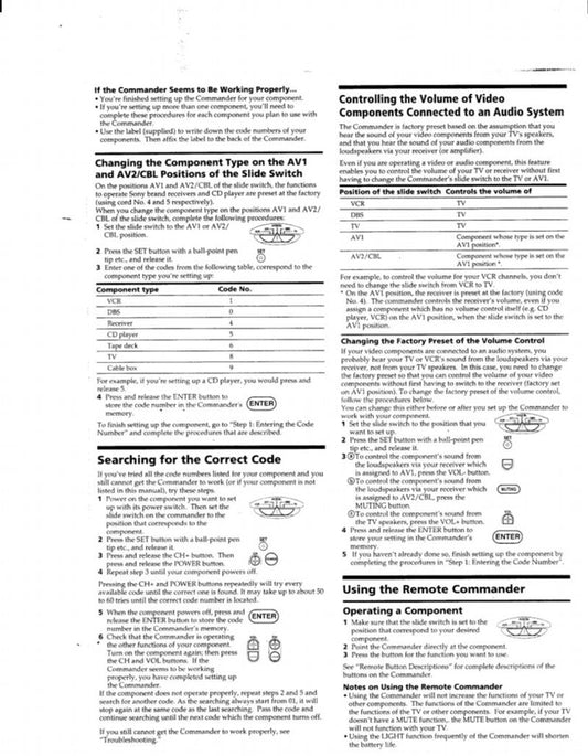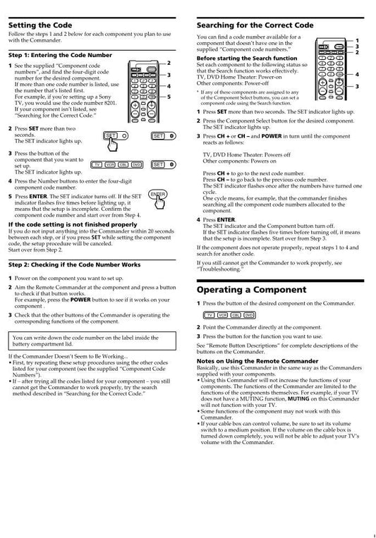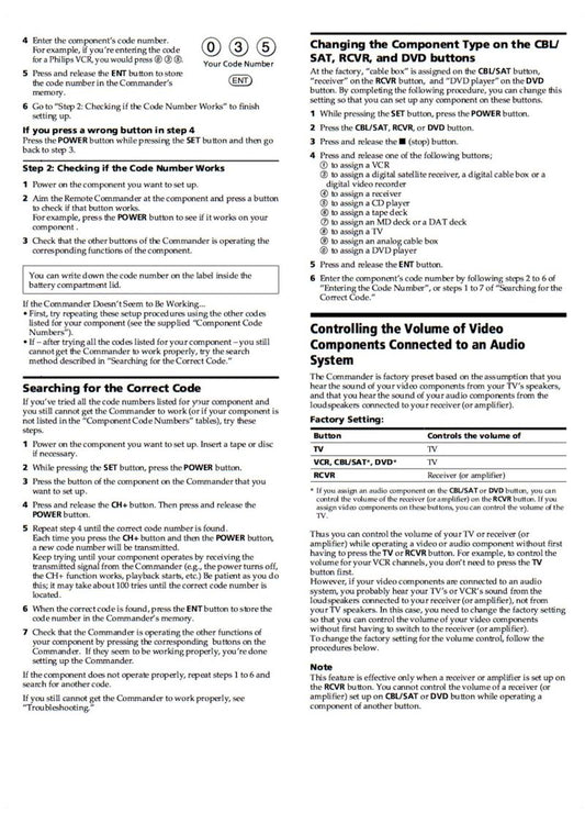 Sony RMEZ4 & CodesOM Universal Remote Control Operating Manual