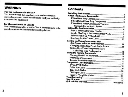 Sony RMV22 & CodesOM Universal Remote Control Operating Manual
