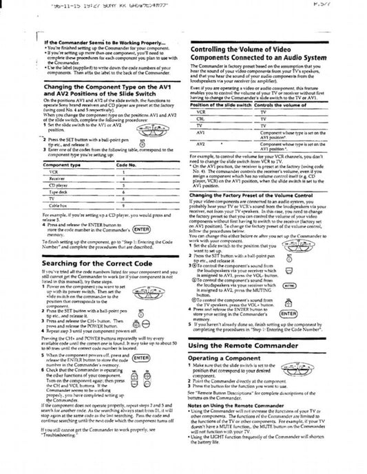 Sony RMV40 & CodesOM Universal Remote Control Operating Manual
