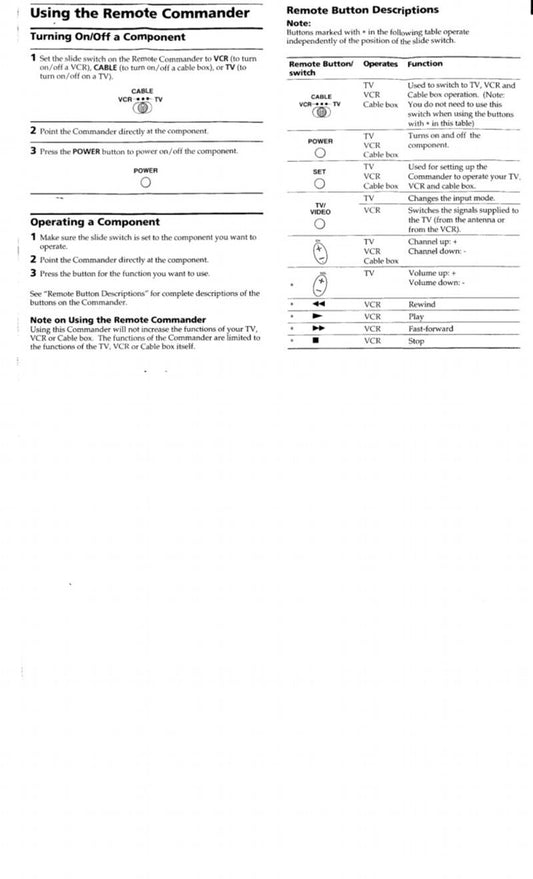 Sony RMV10A & CodesOM Universal Remote Control Operating Manual