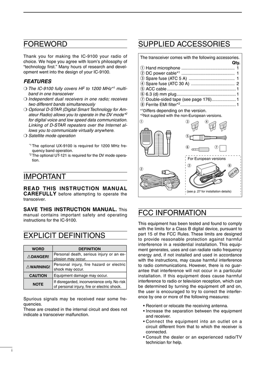 Icom IC-9100 HF/VHF/UHF Transceiver Owner/ User Manual (Pages: 212)