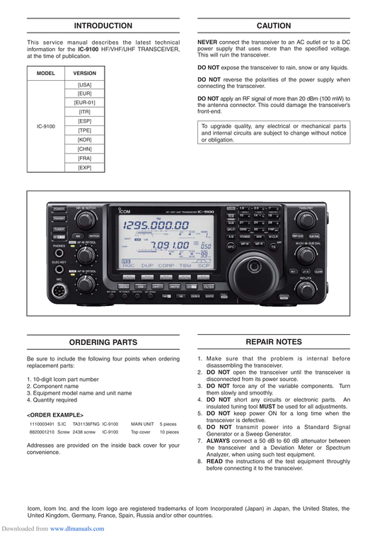 Icom IC-9100 HF/VHF/UHF Transceiver Service Manual (Pages: 163)