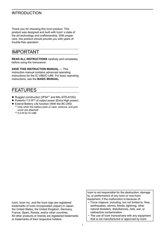 Icom IC-V86 & IC-U86 VHF/UHF Transceiver Owner/ User Manual (Advanced) (Pages: 53)