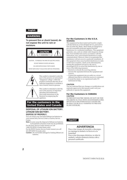 Sony 3858174211 ACV100 DCRPC7 Video Camera Operating Manual