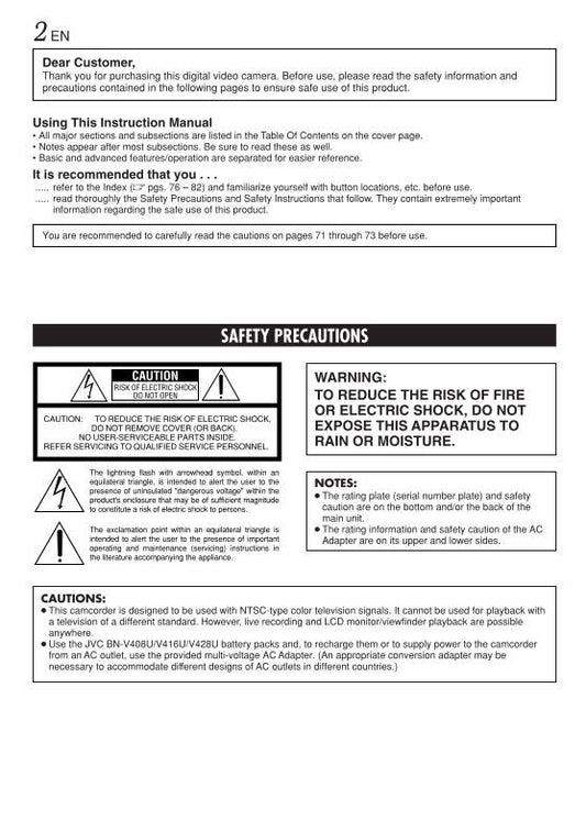 JVC GRD290 GRD270 Video Camera Operating Manual