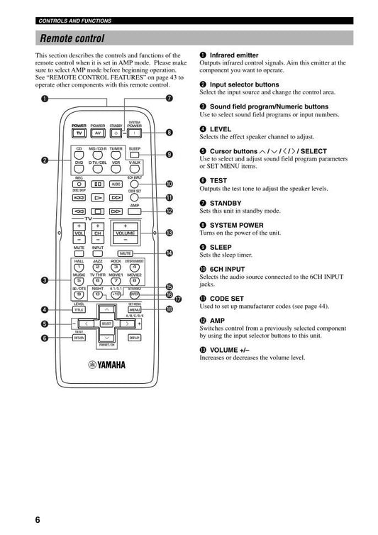 Yamaha RAV315OM Universal Remote Control Operating Manual
