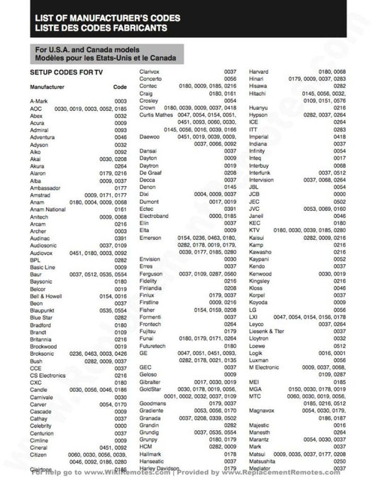 Yamaha RAV172OM Universal Remote Control Operating Manual