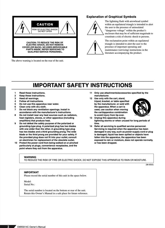Yamaha EMX5000-12 & EMX5000-20 Powered Mixer Owner's/ User Manual (Pages: 38)
