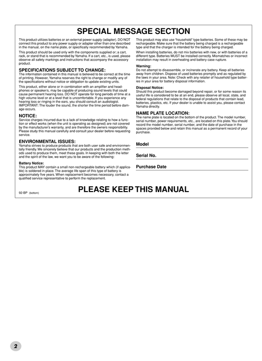 Yamaha DGX-300 & DGX-500 Portable Grand Piano Owner's/ User Manual (Pages:112)