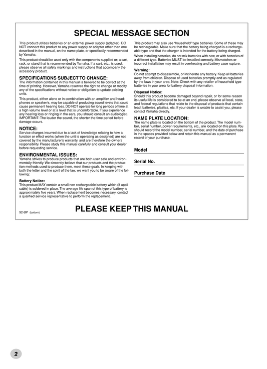 Yamaha DG-Stomp Acoustic Guitar Pre-Amplifier Owner/ User Manual (Pages: 32)