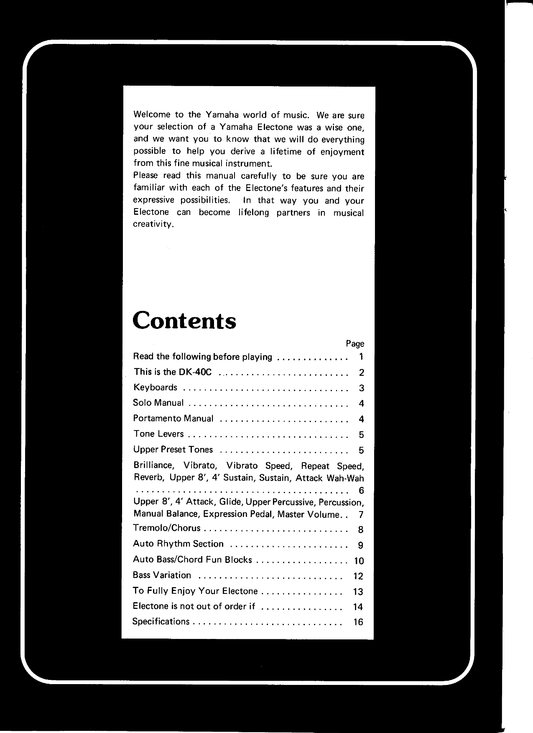 Yamaha DK-40C Electone Organ Owner's/ User Manual (Pages: 20)